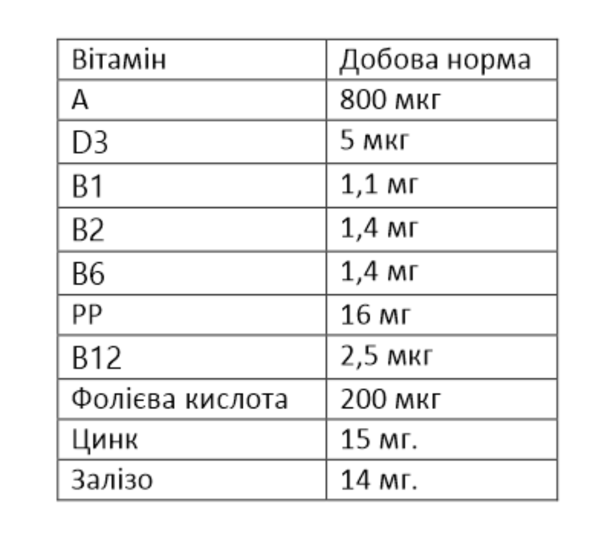 Молоді люди та люди середнього віку мають найбільшу потребу у вітамінах. Проте зовнішні чинники, такі як температура, вологість повітря, атмосферний тиск, екологічний стан середовища та внутрішні чинники – інтенсивні фізичні та розумові навантаження, - формують необхідну добову кількість вітамінів. Таким чином, добова норма в кожній країні може бути однаковою за складом, але різною за кількістю вітамінів.